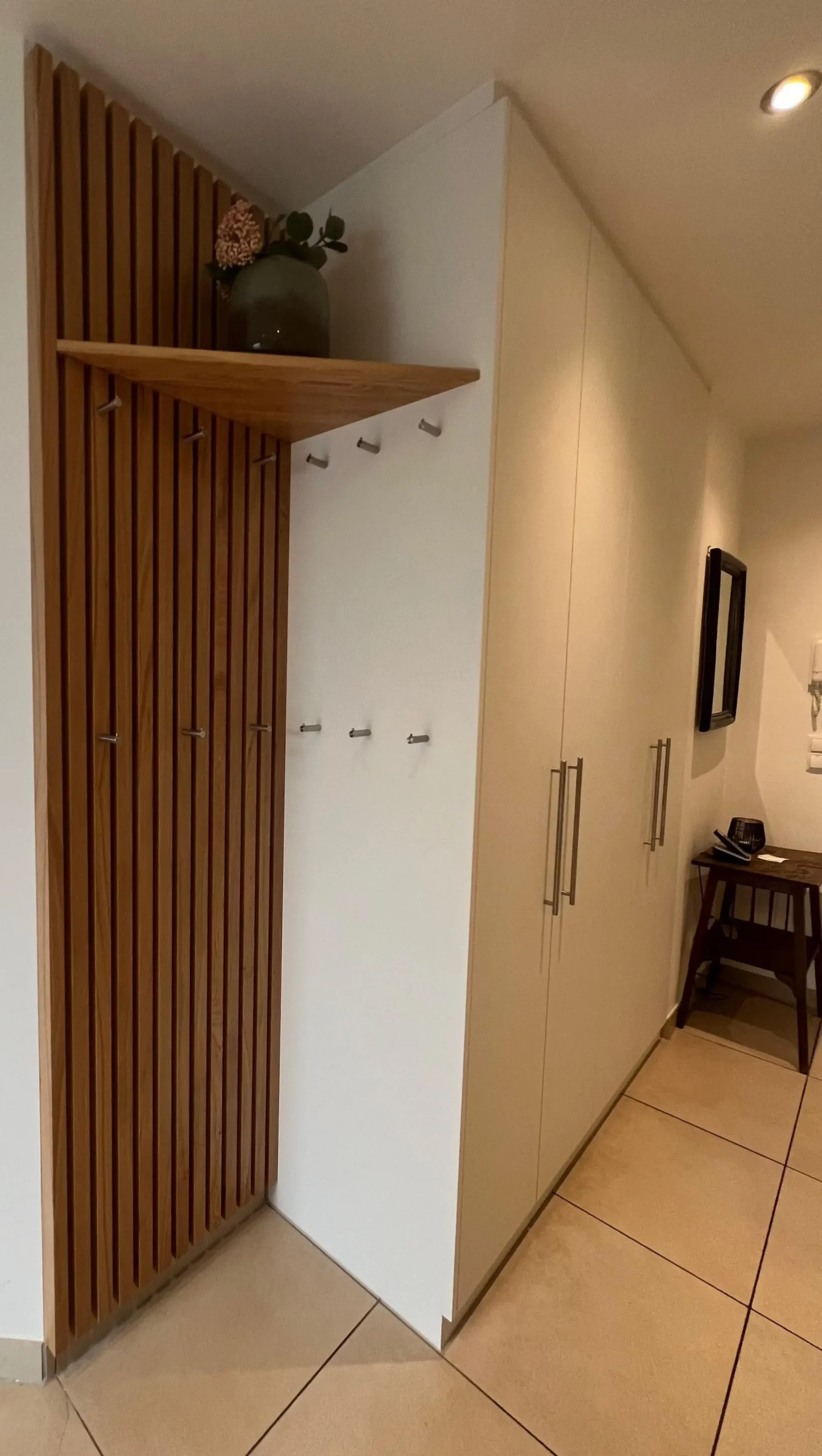 Flurgestaltung modern überarbeitet. Notwendige Funktionen wie Schuhschrank, Gästegarderobe und Stauraum. Handskizze für Bauherrschaft und Tischler erstellt und vom Handwerksbetrieb genauso umgesetzt.